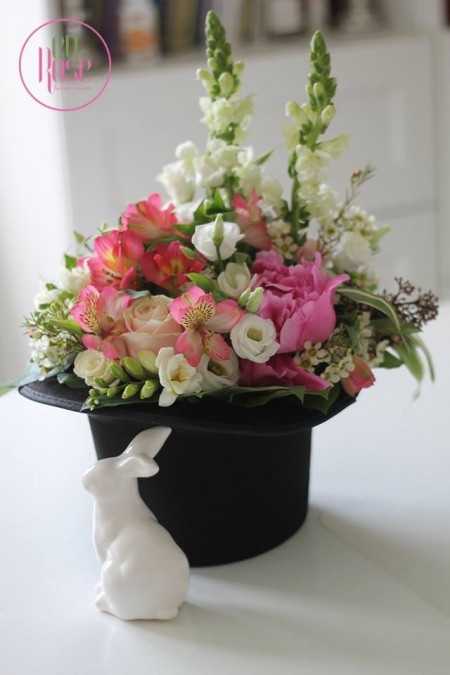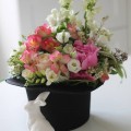 Sa oferi flori unui barbat nu este cel mai neobisnuit lucru din lume! Pentru a evita feminitatea, va recomandam alegerea unor aranjamente florale care incorporeaza elemente masculine. Va propunem un aranjament floral masculin „Joben”, realizat cu flori vesele, de primavara, precum alstroemeria, trandafiri, bujori, gura leului si frezii.