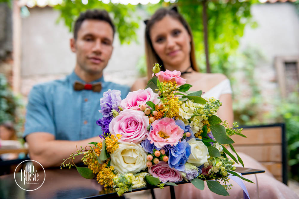 Designul natural si compozitita florala bogata, cat si textura florilor, au compus aceasta creatie incantatoare.
