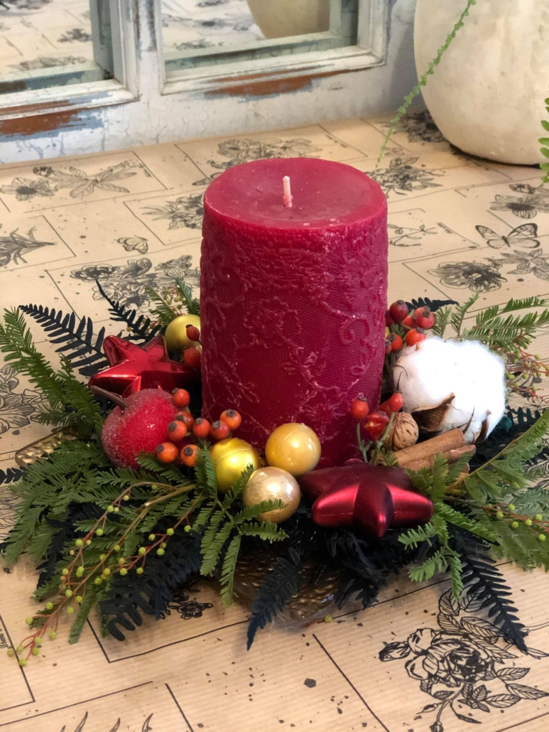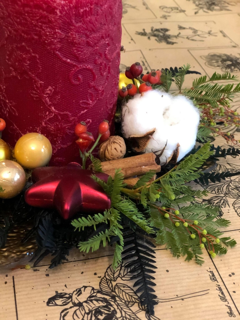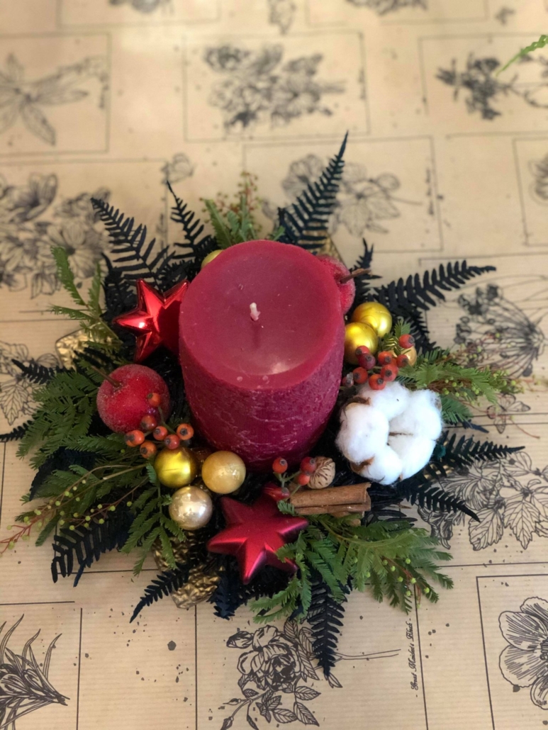 Joy to the world este o decorațiune clasică pentru sărbătorile de iarnă, având nelipsita lumânar roșie, brad natural și ornamente de Crăciun. Am adăugat și scorțisoară naturală, foarte rezistentă. Este o decorațiune pe care o poți păstra mult timp în casa ta.