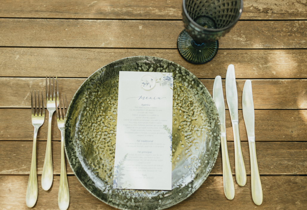 Aceste farfurii de porțelan Patina se pot închiria la prețul de 10 lei/bucata.