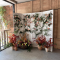 Panoul este compus dintr-un fundal alb din panouri tip obloane, decorat cu flori naturale și uscate în nuanțe delicate de crem, piersică și alb, completate de accente verzi și crenguțe cu fructe roșii.
