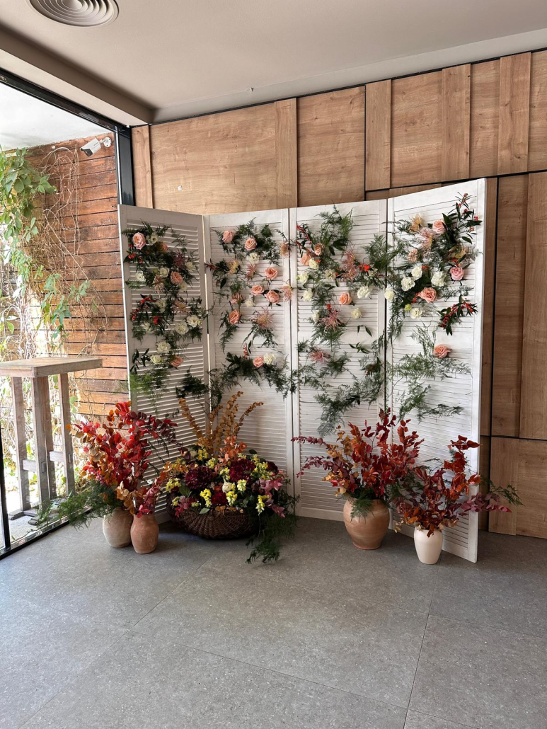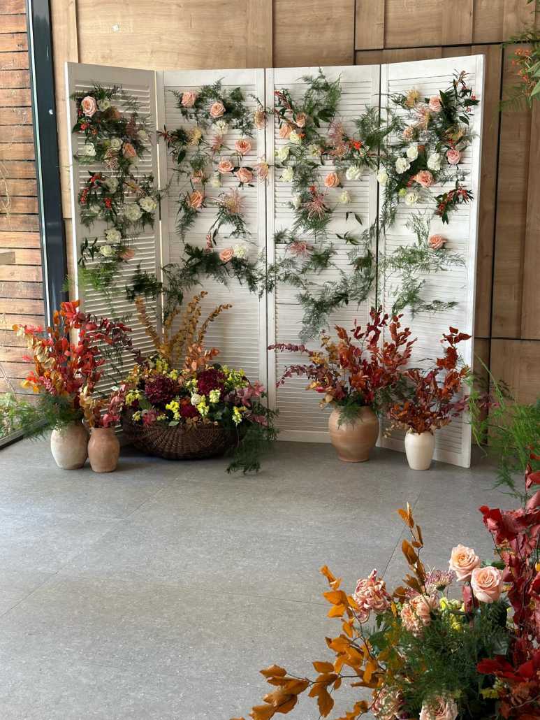 Pentru evenimente de poveste floriștii enRose recomandă acest Photocorner/ panou floral „Colț de toamnă”.