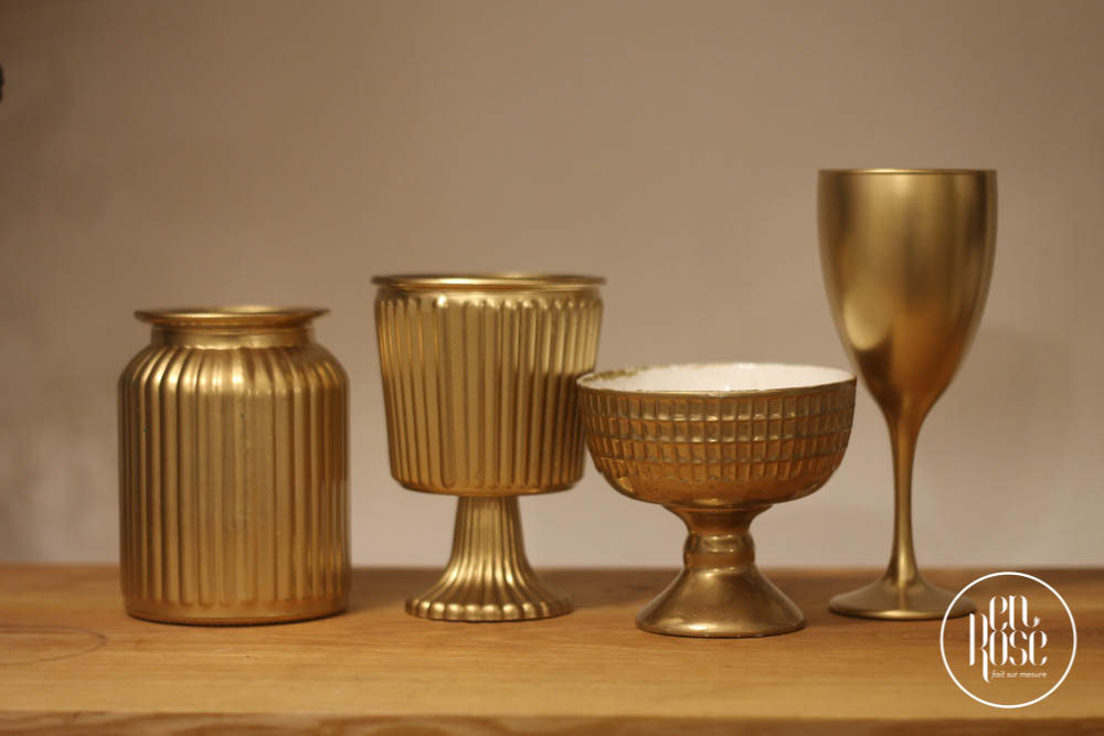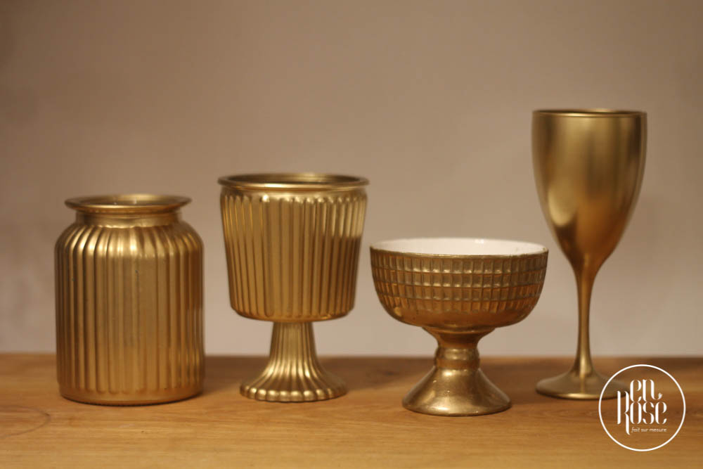 Cupele aurii pot fi folosite pentru realizarea aranjamentelor florale, pentru o masă de prezidiu sau pentru decorul unui candy bar. Aceste cupe elegante se vor putea încadra cu succes într-un decor maiestos, realizat cu bun gust, în funcție de preferințe.