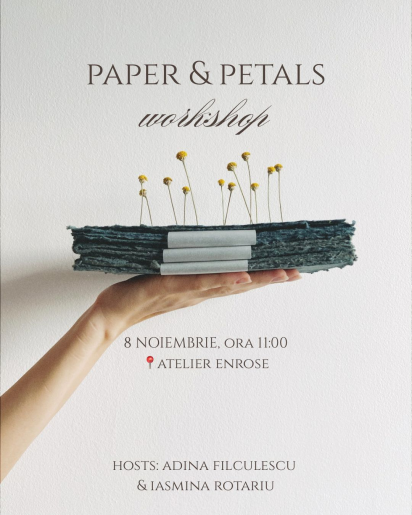 Într-o atmosferă prietenoasă și plină de inspirație, pe data de 8 noiembrie, vei învăța cum să transformi hârtia reciclată în foi noi, îmbogățite cu semințe, ce pot fi plantate ulterior. Timp de 2 ore și jumătate, vei descoperi arta paper making-ului, o tehnică veche reinterpretată într-o formă sustenabilă și poetică.